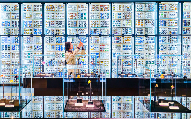 同时,场馆内容融合科普性、审美性与传播性,打造了多个特色展示亮点。馆内既有支撑自然科普传播的基础展陈内容,为公众普及昆虫学知识、传播自然生态理念;也打造了视觉识别度高的蝴蝶墙、古董珠宝尾厅等特色展区,其中蝴蝶墙具备极强的现场传播效果,珠宝尾厅通过昆虫标本与古董珠宝并置展示,构建“自然原型—人类回应”的独特表达,大幅提升了场馆的文化内涵与展示层次。此外,场馆专设活体体验及延展服务区域,通过直观的昆虫行为、生态习性展示,增强自然教育的参与感和现场感,尤其适合青少年群体开展自然研学。